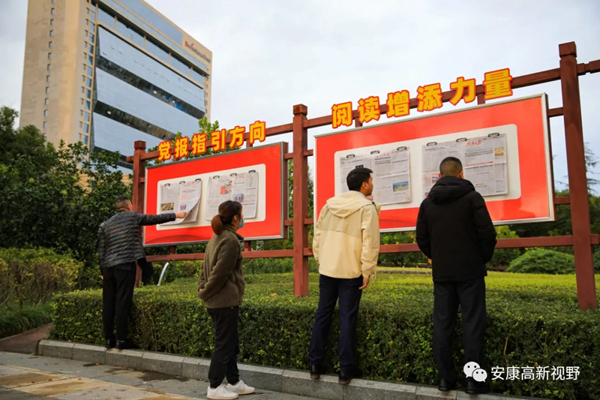 安康高新區(qū)在布設(shè)“閱報(bào)欄”的基礎(chǔ)上,明確了創(chuàng)文辦為管理部門,初步制定了日常管理規(guī)范,切實(shí)做到《人民日?qǐng)?bào)》《經(jīng)濟(jì)日?qǐng)?bào)》《陜西日?qǐng)?bào)》《安康日?qǐng)?bào)》等黨報(bào)黨刊在第一時(shí)間換新、破損在第一時(shí)間更換,確保把黨的聲音在第一時(shí)間傳達(dá)到千家萬戶,把黨的溫暖及時(shí)送到每個(gè)角落,進(jìn)而匯聚起加快建設(shè)西北生態(tài)經(jīng)濟(jì)強(qiáng)市的磅薄力量。