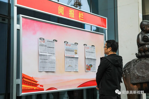 日前,在安康高新區(qū)的市民廣場(chǎng)、政務(wù)中心、公園綠地、大眾餐廳、居民社區(qū)等人口密集區(qū)域,承擔(dān)著“黨報(bào)指引方向,閱讀增添力量”宣傳教育功能的一個(gè)個(gè)“閱報(bào)欄”,讓廣大市民在享受物質(zhì)生活的同時(shí)更具精神追求,成為創(chuàng)建全國文明城市中一道道亮麗的風(fēng)景。