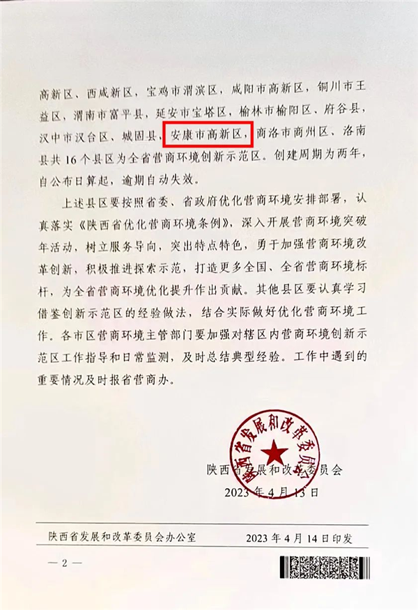 4月18日,在全省營商環(huán)境現(xiàn)場會上,安康高新區(qū)被授予陜西省首批“營商環(huán)境創(chuàng)新示范區(qū)”稱號,成為全市唯一一個獲此殊榮的區(qū)(縣)。