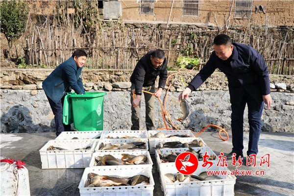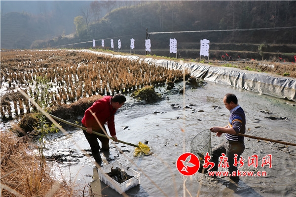 一大早,流芳村脫貧戶張遠林一家就來到自家稻田撈魚。趕魚、撈魚、裝筐一氣呵成,他們要盡快把這些魚送到村里的收購點。