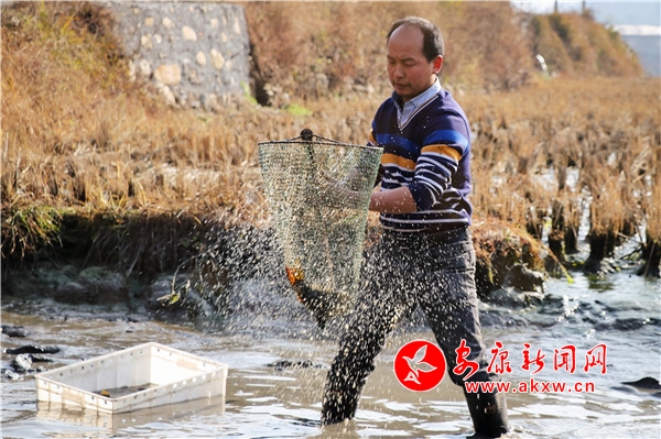 “一上午撈了100多公斤魚,收購價是8塊錢,能賣1600元。家里種了兩畝稻田,稻米、稻魚兩項加起來預計能收入5000元。”張遠林說。