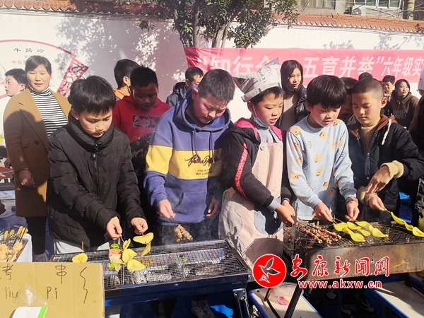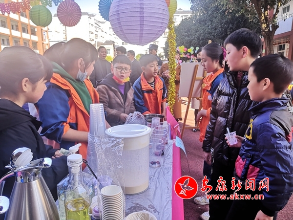 活動(dòng)現(xiàn)場(chǎng),一陣陣美味伴隨著煙火氣彌漫校園,一聲聲叫賣聲此起彼伏,勾起了師生品嘗美食的欲望。宣傳推介結(jié)束,師生們紛紛走向各班排擋,觀摩美食制作過(guò)程,挑選自己喜愛(ài)的美食進(jìn)行品嘗。同學(xué)們?cè)谥谱髅朗、售賣美食、品嘗美食中,感受到了“舌尖上的校園”帶來(lái)的歡樂(lè)。小明同學(xué)高興地說(shuō):“學(xué)校組織這個(gè)活動(dòng)太有意義了,我們放松心情去做自己想做的事情,吃自己想吃的東西,感受到了幸福童年。”