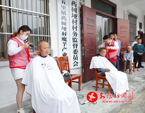 7月19日一大早,五里鎮(zhèn)藥樹埡村熱鬧非凡。很多村民陸續(xù)趕到村委會(huì),排隊(duì)理發(fā)。“我平常理發(fā)要去鎮(zhèn)上,來回一趟得兩三個(gè)小時(shí),還要花二三十的車費(fèi)。這次有人來免費(fèi)給我們理發(fā),真開心。”剛理完發(fā)的曹德秀阿姨高興地說。
