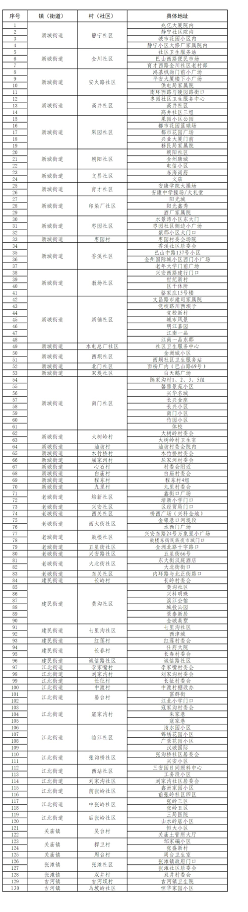 共設(shè)置130個(gè)采樣點(diǎn)(見附件),由各街道辦、鎮(zhèn)政府統(tǒng)一安排采樣點(diǎn)設(shè)置、人員組織、秩序維護(hù),檢測(cè)對(duì)象按照街道辦和鎮(zhèn)政府要求,分時(shí)段有序到指定地點(diǎn)進(jìn)行采樣,避免人員聚集。