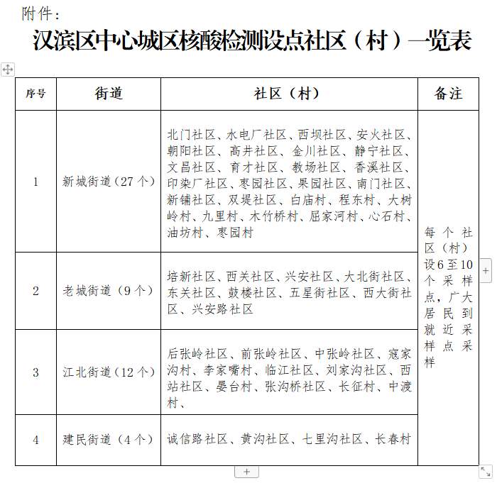 附件:漢濱區(qū)中心城區(qū)區(qū)域核酸檢測設點社區(qū)(村)一覽表