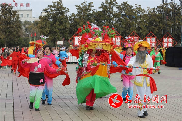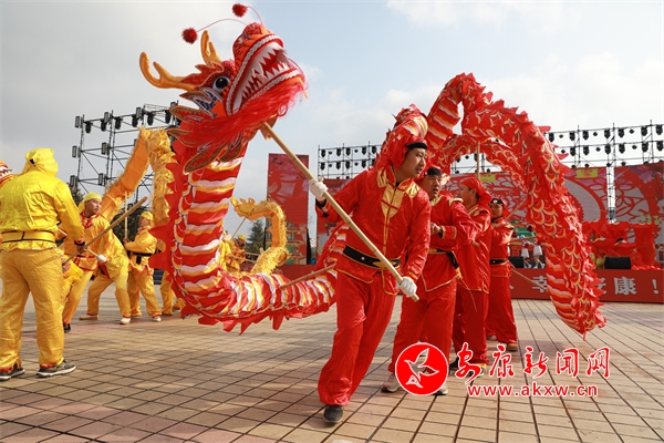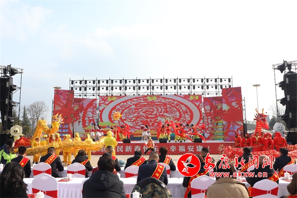在金州廣場(chǎng),身著各色演出服裝的演出隊(duì)伍早早就來(lái)到了現(xiàn)場(chǎng)為表演做準(zhǔn)備,隨著一聲鑼鼓敲響,開(kāi)場(chǎng)舞蹈《盛世歡歌》拉開(kāi)活動(dòng)序幕,花鼓表演唱《花為媒》、女聲合唱《火火的中國(guó)》、少兒舞蹈《百花舞》、戲曲聯(lián)唱《新春納福唱二黃》、漢調(diào)二黃歌舞《非遺賀新春》等節(jié)目陸續(xù)上演,營(yíng)造起了濃濃的節(jié)日氛圍。演員們踏著喜慶的鼓點(diǎn),和著歡快的節(jié)拍舞動(dòng)起來(lái),現(xiàn)場(chǎng)彩龍飛舞,雄獅翻騰,盡顯傳統(tǒng)民俗文化魅力。市民們大飽眼福,紛紛用鏡頭記錄下了各種精彩瞬間。