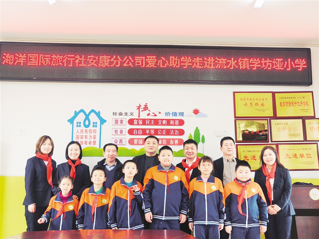 捐贈(zèng)儀式上,學(xué)坊埡小學(xué)少先隊(duì)員為海洋國(guó)際旅行社安康分公司的愛(ài)心人士系上紅領(lǐng)巾,歡迎他們的到來(lái)。隨后,愛(ài)心人士們把一份份愛(ài)心大禮包送到孩子們手中,鼓勵(lì)他們克服困難、努力學(xué)習(xí)。孩子們感動(dòng)之余紛紛表示,一定珍惜這份來(lái)自社會(huì)大家庭的關(guān)愛(ài),將會(huì)更加努力學(xué)習(xí),力爭(zhēng)早日成為國(guó)家有用之才。據(jù)了解,此次活動(dòng)海洋國(guó)際旅行社安康分公司共為學(xué)坊埡小學(xué)捐贈(zèng)助學(xué)物資近萬(wàn)元,其中包括秋季校服、學(xué)習(xí)用品及愛(ài)心大禮包等,惠及該校多名學(xué)生。