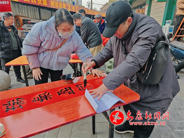 義寫現(xiàn)場(chǎng),10余位書法家們凝神提筆,為社區(qū)群眾潑墨獻(xiàn)藝,楷書、行書、隸書等各種字體躍然紙上。“一帆風(fēng)順年年好,萬(wàn)事如意步步高”“蛇舞春風(fēng)傳喜訊,燕歸故里報(bào)佳音”等一副副寓意吉祥的春聯(lián)在筆下完成,一副副精心創(chuàng)作的年畫躍然紙上,令人賞心悅目,更有書法愛(ài)好者踴躍加入,與老師們互動(dòng)交流。社區(qū)的紅馬甲志愿者忙碌著分發(fā)、晾曬春聯(lián),聞?dòng)嵍鴣?lái)的群眾絡(luò)繹不絕,大家拿著手寫的春聯(lián)和年畫,喜悅之情溢于言表。本次活動(dòng)共書寫對(duì)聯(lián)300余副,“福”字200余張,送出國(guó)畫作品40余幅。