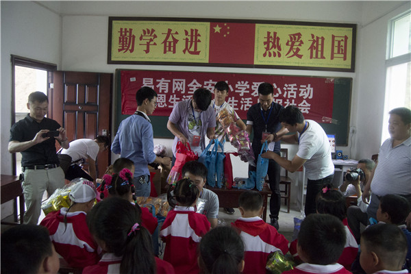 (給孩子們發(fā)放學(xué)習(xí)用具)