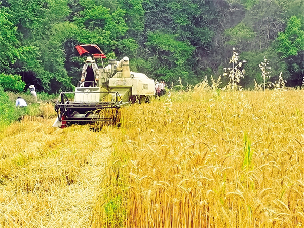 風(fēng)吹麥田千層浪,又到一年收獲時。在漢濱區(qū)晏壩鎮(zhèn)中心社區(qū)安康客意然農(nóng)業(yè)開發(fā)有限公司種植園區(qū)內(nèi),小麥在陽光的照耀下,閃著金燦燦的光芒,沉甸甸的麥穗隨風(fēng)搖曳……