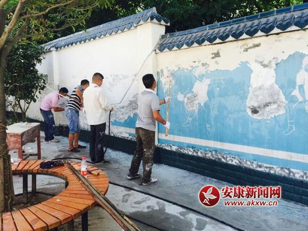 原來這是該校校園圍墻美化工程正在緊張的實施當(dāng)中,盡管酷暑難當(dāng),但學(xué)校領(lǐng)導(dǎo)依然堅守崗位,工人師傅們更是揮汗如雨,認(rèn)真細(xì)心地做好每一道工序。該校近年來校園基礎(chǔ)設(shè)施建設(shè)發(fā)生了顯著變化,特別是總面積達12畝的塑膠操場建成后,更是讓原本清新整潔的校園新增了一道亮麗的風(fēng)景線。讓人感到美中不足的是原有500余米的圍墻墻面有些斑駁陳舊,學(xué)校積極爭取項目資金,并于7月4日正式開始對圍墻進行“美化”,秋季開學(xué)之際,重返校園的師生將會看到一扇扇嶄新的、充滿人文氣息的文化宣傳墻。