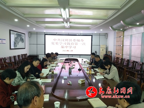 本網(wǎng)訊(通訊員 陳緒艷)3月22日上午,漢陰縣委編辦召開黨史學(xué)習(xí)教育動(dòng)員會(huì)議,學(xué)習(xí)貫徹中、省、市、縣黨史學(xué)習(xí)教育動(dòng)員大會(huì)精神,安排部署黨史學(xué)習(xí)教育工作,就習(xí)近平總書記《論中國共產(chǎn)黨歷史》相關(guān)篇目開展了第一次集中學(xué)習(xí)。