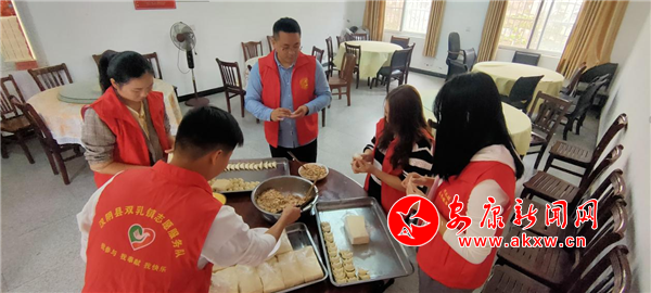 一大早,三同村和玉河村黨支部黨員干部就開始了緊張有序準備工作,村部廣場上,擺起支起了一口大鍋。切菜剁肉,剁餡包餃子,收拾餐桌......忙得不亦樂乎,鉚足了勁要讓老人過一個難忘的重陽佳節(jié)。對于行動不便和年齡大的老人,身穿紅馬甲的志愿者甚至上門用車把老人們送到村部。