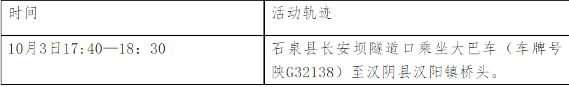 根據(jù)流調(diào)情況,現(xiàn)將漢中市西鄉(xiāng)縣兩例初篩陽(yáng)性病例涉及密切接觸者在漢陰縣的公共場(chǎng)所活動(dòng)軌跡公布如下: