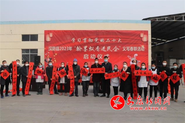本網訊(通訊員 唐成明)寅虎辭歲萬象新,卯兔迎福報春來。為認真學習貫徹落實黨的二十大精神,進一步弘揚傳承中華民族的優(yōu)秀傳統(tǒng)文化,大力營造全縣上下關心支持民營經濟發(fā)展的濃厚氛圍。1月12日上午,漢陰縣工商聯聯合縣文聯舉行“翰墨飄香進民企”義寫春聯活動啟動儀式。