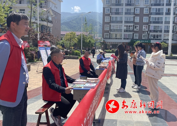 舞臺(tái)兩側(cè)整齊規(guī)范地?cái)[放著咨詢臺(tái)和展板,志愿者們正在開展醫(yī)療健康、法律、環(huán)保、安全等知識(shí)宣傳,并發(fā)放了紙杯、毛巾、洗臉盆等群眾需要的日常生活用品。