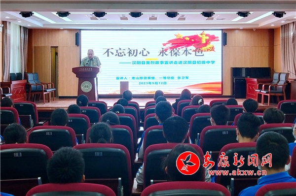 本網(wǎng)訊(通訊員 蘭本波)追溯五月之紅,續(xù)寫紅色華章。5月12日,由漢陰縣退役軍人事務(wù)局開展的英烈故事“進(jìn)機關(guān)、進(jìn)學(xué)校、進(jìn)社區(qū)、進(jìn)軍營、進(jìn)企業(yè)”巡回宣講活動走進(jìn)漢陰縣初級中學(xué)。