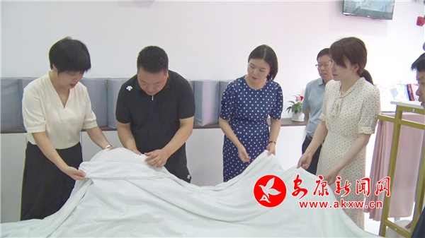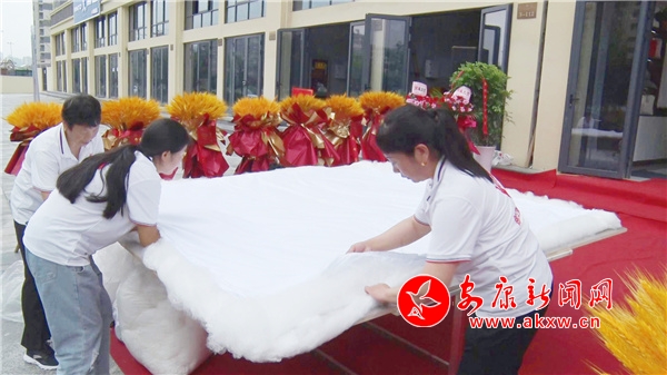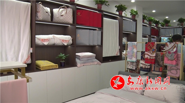 在新開(kāi)的漢陰鐵佛寺鎮(zhèn)錦漢蠶絲被旗艦店,工人們還演示了拉絲制被的過(guò)程,采用傳統(tǒng)手工拉絲工藝,將半成品絲拉松、拉長(zhǎng),逐層鋪疊,縱橫交錯(cuò),逐層壓縮,最終制造出一床優(yōu)質(zhì)的蠶絲被。進(jìn)入旗艦店,絲巾、睡衣、蠶絲被、床上用品等優(yōu)質(zhì)蠶絲制品一應(yīng)俱全。
