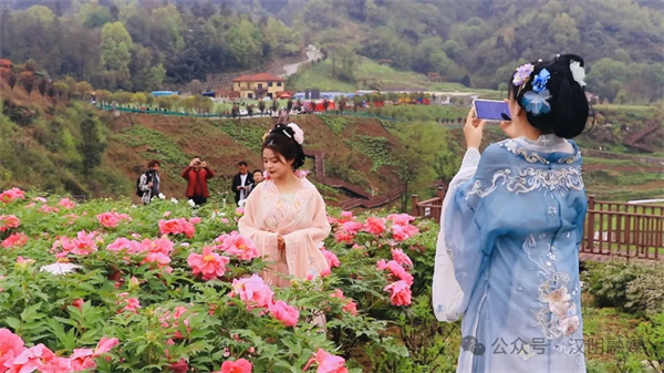走進(jìn)牡丹園內(nèi),可以看見(jiàn)一朵朵姹紫嫣紅、一株株玉笑珠香、一叢叢富麗堂皇的牡丹花,展現(xiàn)了“群芳盡怯千般態(tài)”的美景,吸引眾多游客前來(lái)賞花、拍照。一群身著華麗漢服的“花仙子”在園內(nèi)巡游,她們頭戴簪花,衣袂飄飄,仿佛從畫(huà)中走出,與現(xiàn)場(chǎng)觀眾共同欣賞這春日的美景。不僅為活動(dòng)增添了濃厚的文化氛圍,更讓游客們仿佛穿越到了古代的游園盛會(huì),親身體驗(yàn)?zāi)欠莨艠闩c雅致。
