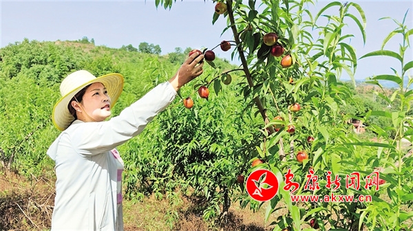 走進(jìn)蔣家溝,大片桃林綠意盎然,一個(gè)個(gè)鮮紅飽滿的油桃和紅桃掛滿枝頭,濃郁的果香撲鼻而來(lái),“桃”醉人心。果農(nóng)們提著籃子穿梭其間忙著采摘,豐收的喜悅溢于言表。“今年的桃子產(chǎn)量比去年高,品種多、品質(zhì)也有保障,剛上市就收了三個(gè)大訂單,大家得抓緊把貨備齊……”前進(jìn)村產(chǎn)業(yè)發(fā)展負(fù)責(zé)人楊啟軍一邊分揀果子,一邊和入園務(wù)工的群眾交流。