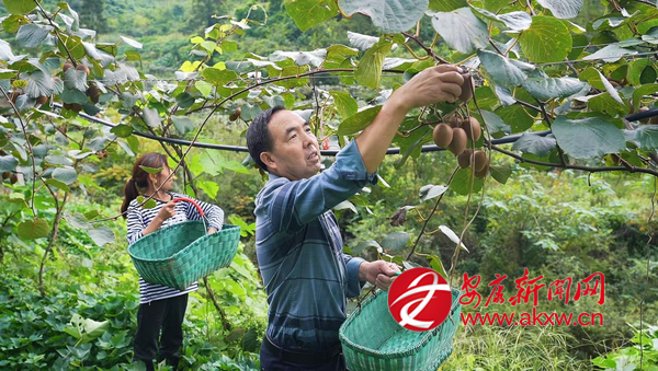 在觀音河鎮(zhèn)中坪村種植大戶王詩金的獼猴桃園里,連綿的藤架上果實累累,黃褐色的獼猴桃成串懸掛,王詩金和家人一起穿梭于藤蔓之間,熟練地采摘、搬運,臉上寫滿了喜悅。