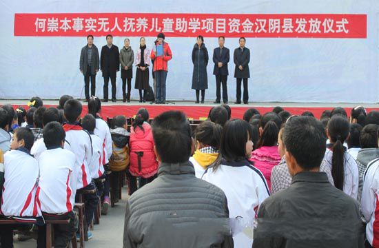 12月12日,何崇本事實(shí)無人撫養(yǎng)兒童助學(xué)項(xiàng)目資金漢陰縣發(fā)放儀式,在漢陽鎮(zhèn)中心小學(xué)隆重舉行。省婦女兒童基金會(huì)秘書長孫磊一行、縣委副書記劉飛霞、縣委常委組織部……