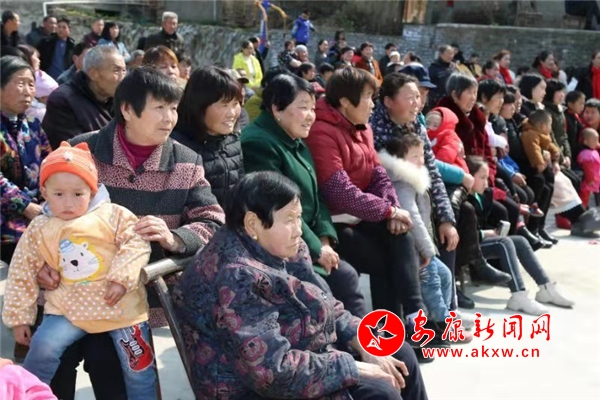 這場(chǎng)"幸福都是奮斗出來的"新民風(fēng)文藝演出在唐灣村"百姓大舞臺(tái)"拉開帷幕,節(jié)目舞蹈《開門紅》《祝福祖國(guó)》《幸福安康》;眉戶劇《梁秋燕》;快板《說唱安康新民風(fēng)》;小品《豬八戒背媳婦》《幸福一家人》;小戲《黃四姐》;表演唱《大家喜歡》《逛唐灣》《五只小船》《龍船調(diào)》;二人轉(zhuǎn)《小拜年》;黃梅戲《夫妻觀燈》;道情《毛驢》等深受群眾喜愛,節(jié)目精彩紛呈,現(xiàn)場(chǎng)處處洋溢著歡樂祥和的氣氛,給觀看演出村民帶來了一場(chǎng)視聽盛宴。村民唐志海說:"我在漢中創(chuàng)業(yè)多年,今天觀看了這場(chǎng)勵(lì)志文藝演出,節(jié)目實(shí)惠、通俗易懂、很接地氣"。村黨支部書記唐志亮說:"唐灣村是全市第一年已脫貧村,通過黨建引領(lǐng)新民風(fēng)建設(shè),大力弘揚(yáng)誠、孝、儉、勤、和,遵紀(jì)守法、精神文明建設(shè),精準(zhǔn)扶貧工作著力扶貧扶志、美麗生態(tài)鄉(xiāng)村、族規(guī)家訓(xùn)、經(jīng)濟(jì)發(fā)展等讓村民的幸福指數(shù)不斷提升,日子越過越紅火"。八十五歲高齡退休教師唐祖勝說:"過去村里逢年過節(jié)放電影、玩彩船、;瘕垼幕钬S富的很?稍谧罱鼛啄晡幕麄骰顒(dòng)少了,閑人聚在一起就是打牌賭博,讓農(nóng)村社會(huì)風(fēng)氣變了樣,今年政府倡導(dǎo)禁止煙花爆竹燃放,所以百姓大舞臺(tái)文藝演出便成了一種新時(shí)尚。.