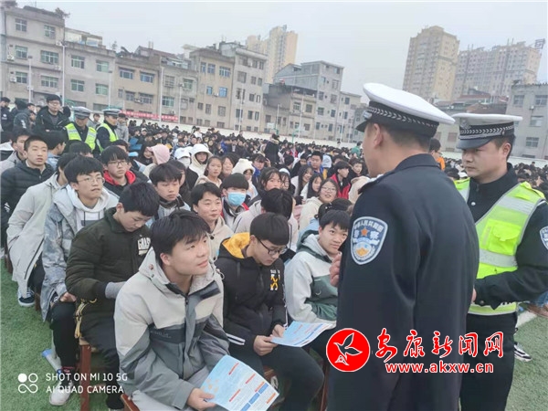本網(wǎng)訊(通訊員 梁珊珊)為深入學(xué)習(xí)宣傳習(xí)近平法治思想,大力弘揚(yáng)憲法精神,進(jìn)一步加強(qiáng)中學(xué)生道路交通安全意識(shí),共同創(chuàng)建安全、文明、和諧的平安校園。12月9日,恒口分局交警大隊(duì)聯(lián)合恒口司法所、恒口法庭等部門,走進(jìn)轄區(qū)恒口高級(jí)中學(xué),開展第三個(gè)全國(guó)“憲法宣傳周”宣傳暨交通安全宣傳進(jìn)校園法制報(bào)告會(huì)。