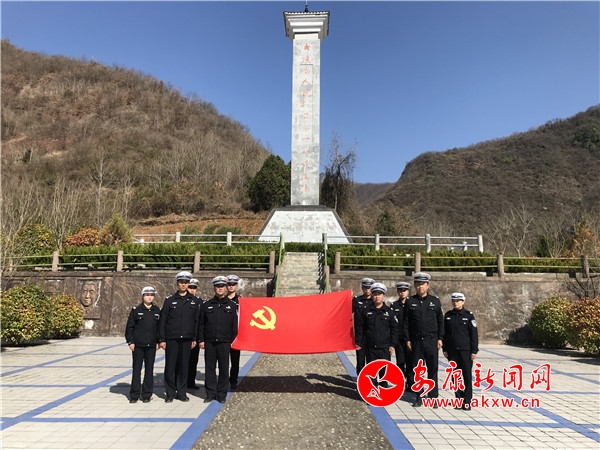 在參觀活動中,支部老黨員和年輕黨員、積極分子們一起暢所欲言,認真聆聽大隊教導員講解陜南人民抗日第一軍的簡要事跡,深情緬懷革命先烈的豐功偉績。年輕黨員被革命年代共產黨員的無畏獻身精神和為實現(xiàn)共產主義的堅定信仰所震撼,深深體會到沒有共產黨就沒有新中國是永不顛覆的真理,全體黨員政治思想受到了洗禮、政治品格得到了錘煉。參觀紀念廣場后,全體黨員佩戴徽章,整齊站立在陜南人民抗日第一軍成立地紀念碑下,共同緬懷革命烈士,隨后面對中國共產黨黨旗重溫了入黨誓詞,并向黨組織作出了莊嚴承諾,將始終堅定政治信念,勇敢擔當作為,認真遵守政治紀律和政治規(guī)矩,切實履行好新時代人民公安職責使命,以優(yōu)異成績向建黨100周年獻禮。