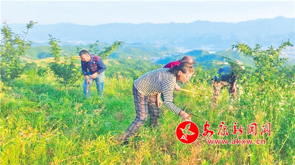 初夏的陽光下,農(nóng)民在花椒樹之間中除草,忙得不亦樂乎?粗G得發(fā)亮的果實(shí)密密麻麻掛滿枝頭,大家都喜上眉梢。