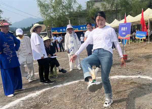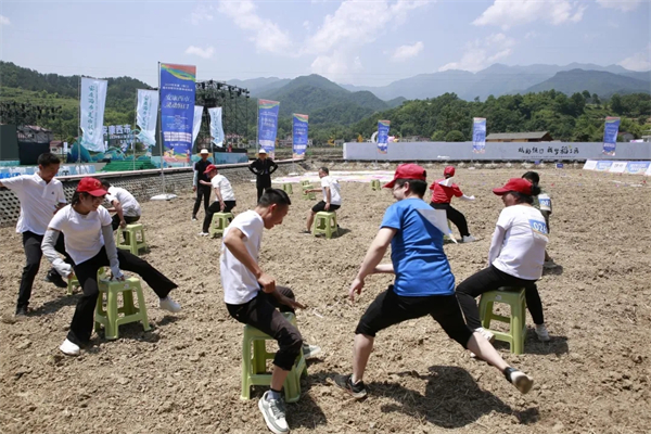 據(jù)悉,本次活動(dòng)舉辦地分別為溪映明月·南山云見片區(qū)和民族風(fēng)情·運(yùn)動(dòng)休閑片區(qū),共開展了“背簍投籃”“稻田摸魚”“田園拔河”等活動(dòng),另有“搶凳子”“跳大繩”等5個(gè)團(tuán)體賽項(xiàng)目吸引了大量群眾參與體驗(yàn)。 “踢毽子”“抓石子”“斗雞、跳繩、抽陀螺”,彰顯農(nóng)活絕技的“拋秧苗、滾鐵環(huán)、趣味插秧賽”等8個(gè)個(gè)人項(xiàng)目,將田園風(fēng)光里的郊外農(nóng)民趣味運(yùn)動(dòng)會推向高潮。
