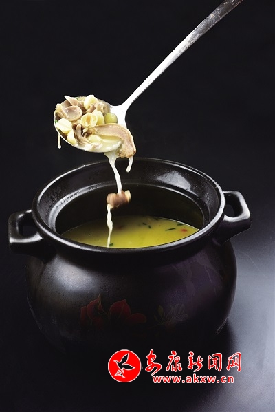 豬肚蓮子養(yǎng)生湯:將新鮮豬肚清洗焯水,蓮子取芯,加輔料用大火熬制成湯。豬肚為豬科動物豬的胃,味甘,性溫,歸脾、胃經;蓮子為睡蓮科植物蓮的干燥成熟種子,味甘、澀,性平,歸脾、腎、心經。豬肚蓮子湯自古以來就是一道食補菜,具有補脾止瀉、益腎澀精、養(yǎng)心安神的功效。