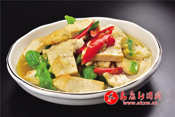煎豆腐:將豆腐切成3厘米寬、5厘米長、0.5厘米厚的大片,韭菜擇洗干凈,切成1厘米長的小段,起鍋燒油,豆腐煎至兩面金黃,放入韭菜段,悶一分鐘即可,煎豆腐外表酥脆、內里細嫩,香氣四溢,深受喜愛。