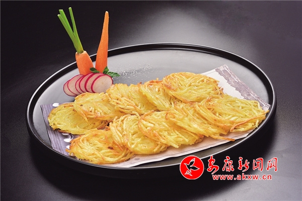 土豆絲餅:用嵐皋當地的土豆切絲,混入面糊,再用油煎炸出鍋,色澤金黃,清香酥脆,回味無窮。