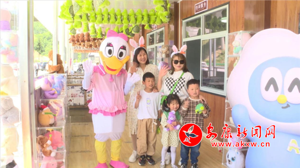 “五一”小長假來臨,嵐皋高速公路出口游客服務工作站面貌一改往日嚴肅簡約的風格,圍繞“毛絨玩具+文旅”這一主題,不僅設置了“網(wǎng)紅”毛絨玩具拍照打卡墻和毛絨玩具裝飾的通道,更有戴上卡通發(fā)箍、穿上玩偶服飾的志愿者們?yōu)榍皝碜稍兊挠慰吞峁┵N心服務。