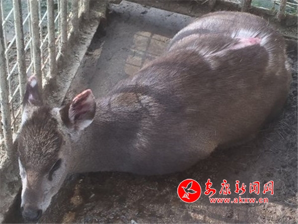 據(jù)了解,當(dāng)時(shí)四畝地村村民茍興成正沿著河邊往家走,突然發(fā)現(xiàn)有一動(dòng)物在河里掙扎,仔細(xì)一看好像是一頭“青麂子”掉河里了,老茍立即喊了幾個(gè)村民一起將它救上了岸,村民們發(fā)現(xiàn)它受傷了,于是報(bào)了警,附近寧陜榮庚生物科技有限公司林麝養(yǎng)殖場(chǎng)的工作人員得知消息后拿來(lái)了養(yǎng)殖場(chǎng)的工具,對(duì)“青麂子”進(jìn)行了暫時(shí)安置。