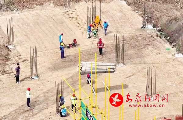 10月8日,在寧陜縣三星康養(yǎng)綜合體項目施工現(xiàn)場,機械轟鳴聲、鋼筋敲擊聲不絕于耳。一臺臺挖掘機、推土機正在平整土地。工人們搶抓工期、加緊施工,整個工地繁忙而有序。