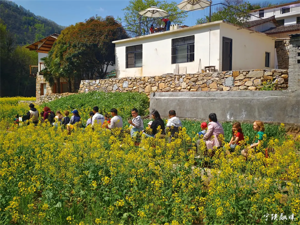 漁灣村位于寧陜縣城以南,距離縣城約11公里。這里依山傍水,景色秀美,已建成鹿柴山集精品民宿、稻田小火車(chē)等項(xiàng)目,并打造出朱鹮保育稻田、陜南鄉(xiāng)村田園等自然人文景致,有著豐富的生態(tài)資源和深厚的文化底蘊(yùn)。清明時(shí)節(jié),正是油菜花盛開(kāi)的季節(jié),田間地頭金黃一片,吸引了眾多游客前來(lái)觀(guān)賞。