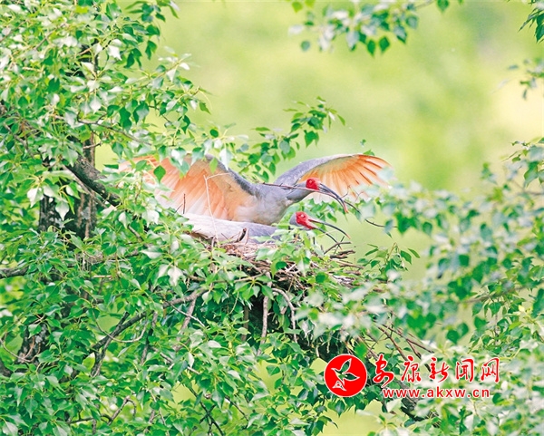 朱鹮正在輪崗進(jìn)行孵化 寧陜?nèi)诿焦?span style="display:none">Eh4安康新聞網(wǎng)
