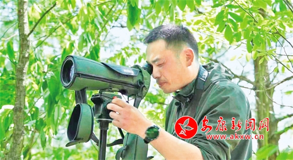 李夏正在野外觀察朱鹮孵化情況 楊穩(wěn) 攝
