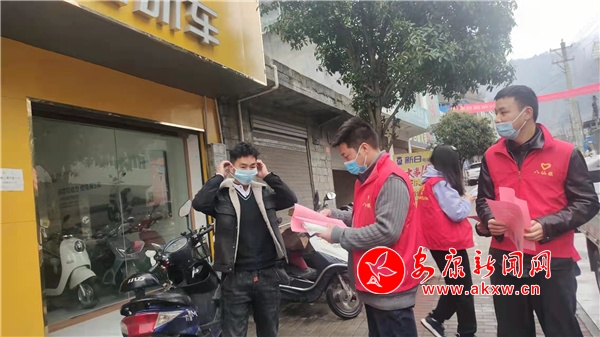 3月25日,平利縣八仙中學(xué)志愿者小分隊(duì)?wèi)?yīng)邀走進(jìn)八仙鎮(zhèn)街道,開(kāi)展疫情防控宣傳志愿服務(wù),他們走進(jìn)門(mén)店超市、小區(qū)、市場(chǎng),廣泛宣傳勤洗手、常通風(fēng)、戴口罩、測(cè)體溫、打噴嚏捂口鼻、少出門(mén)、不聚集,做好疫苗接種等疫情防控常識(shí),挨個(gè)勸說(shuō),挨個(gè)引導(dǎo),充分發(fā)揚(yáng)了先鋒模范作用。 (圖文/李傳祥)Sf4安康新聞網(wǎng)
