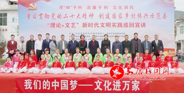理論+文藝“飛入尋常百姓家”。陽(yáng)春三月,“學(xué)習(xí)宣傳貫徹黨的二十大精神 奮力創(chuàng)建國(guó)家鄉(xiāng)村振興示范縣”理論+文藝新時(shí)代文明實(shí)踐巡回宣講啟動(dòng)儀式在大貴鎮(zhèn)后灣村成功舉行,活動(dòng)現(xiàn)場(chǎng),《美麗中國(guó)》歡快舞動(dòng),《茶香春早》悅耳動(dòng)聽(tīng),《鄉(xiāng)村處處話(huà)振興》娓娓道來(lái),《沁園春·雪》雄邁豪放,理論宣講貫穿其中,一場(chǎng)視聽(tīng)盛宴下來(lái),群眾對(duì)發(fā)展的信心、對(duì)理論、政策的學(xué)習(xí)熱情更加高漲。將黨的二十大精神精準(zhǔn)地轉(zhuǎn)化為接地氣的文藝節(jié)目,讓群眾聽(tīng)得清、聽(tīng)得懂、聽(tīng)得進(jìn)、用得上,收獲滿(mǎn)滿(mǎn)。