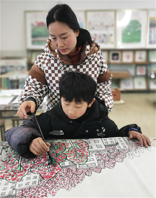 學(xué)校國畫社團(tuán)的孩子們,經(jīng)過兩天的緊張培訓(xùn)、繪制草圖、精心創(chuàng)作,十余名學(xué)生畫出了美麗鄉(xiāng)村的豐收場景,畫出了孩子們美好生活的快樂情趣,也畫出了漢調(diào)二黃戲劇人物水墨畫印象,從多角度贊美了美麗家園、幸福安康。在安康兒童美育專家宋安平和鄭字堂、王彬等老師的精心輔導(dǎo)下,孩子們的國畫作品,將選送參加中央美術(shù)學(xué)院少兒美術(shù)研究中心主辦的展覽。