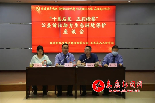 活動現(xiàn)場,采訪團(tuán)通過聽取介紹、觀看展板和公益訴訟宣傳片,了解了近年來石泉縣人民檢察院致力于守護(hù)“青山、綠水、藍(lán)天、黃土、紅色旅游資源”等公益訴訟相關(guān)領(lǐng)域上的創(chuàng)新舉措和取得的成效。座談會上,石泉縣人民檢察院黨組書記、檢察長程文亮對與會人員的到來表示歡迎并就現(xiàn)階段公益訴訟工作情況作了簡單介紹。第二檢察部副主任呂松對石泉縣人民檢察院公益訴訟“十美石泉、五彩檢察”工作進(jìn)行了詳細(xì)匯報(bào),并對采訪團(tuán)就重點(diǎn)辦理推進(jìn)漢江水體生態(tài)保護(hù)、“散亂污”企業(yè)綜合治理、縣域土地資源保護(hù)等方面的具體案例進(jìn)行了深入講解。會后,采訪團(tuán)對補(bǔ)植復(fù)綠工作進(jìn)行了實(shí)地走訪。大家紛紛表示,將認(rèn)真歸納整理石泉縣人民檢察院的特色亮點(diǎn)工作和先進(jìn)典型事跡,深入挖掘好故事,用心描寫創(chuàng)新點(diǎn),努力傳播正能量,充分展示檢察機(jī)關(guān)的良好形象,讓人民群眾更好地了解和支持檢察工作,讓石檢好聲音和法治“正能量”走出“法律圈”融入百姓“朋友圈”。