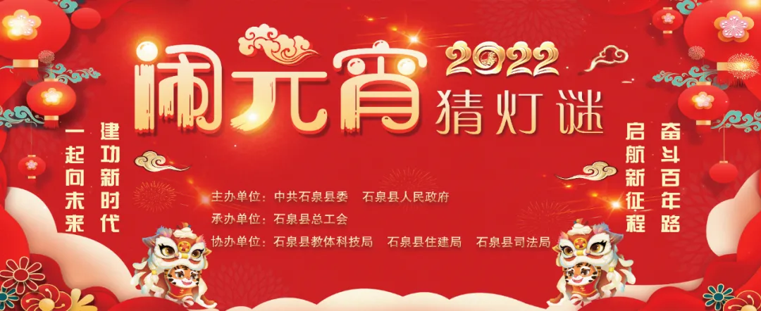 為豐富干部職工文化生活,營造喜慶祥和的節(jié)日氛圍,弘揚(yáng)中華優(yōu)秀傳統(tǒng)文化,石泉縣2022年元宵燈謎有獎(jiǎng)競(jìng)猜活動(dòng)將于2月14日10點(diǎn)30分在人民廣場(chǎng)正式舉行。此次活動(dòng)由石泉縣委、縣政府主辦,縣總工會(huì)承辦,縣教體科技局、縣住建局、縣司法局協(xié)辦,目前各項(xiàng)前期籌備工作正在有序推進(jìn)。