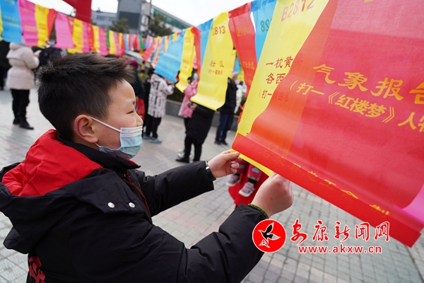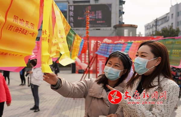 廣場上高高懸掛的大紅燈籠格外喜慶,兩千余條彩色布條謎語在陽光下隨風(fēng)起舞,F(xiàn)場吸引眾多市民熱情參與,大家嚴(yán)格按照疫情防控相關(guān)規(guī)定,有序排隊(duì)領(lǐng)取謎票競猜,再根據(jù)謎題上的序號分組排隊(duì)兌獎(jiǎng),廣播里不時(shí)傳來中獎(jiǎng)通報(bào),人們臉上都洋溢著快樂的笑容。