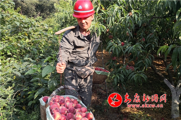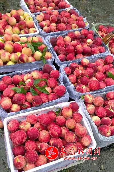 產(chǎn)業(yè)大戶許國棟的果園里栽種有蜜桃、黃桃、油桃、蟠桃、冬桃等七八個品種桃樹。蜜桃和黃桃現(xiàn)已大量上市。果園里工人們正加緊采收桃子,分揀裝框,一部分運往附近超市,一部分通過網(wǎng)絡訂單發(fā)往全國各地。高峰時期,許國棟果園一天售出的桃子達4000余斤。