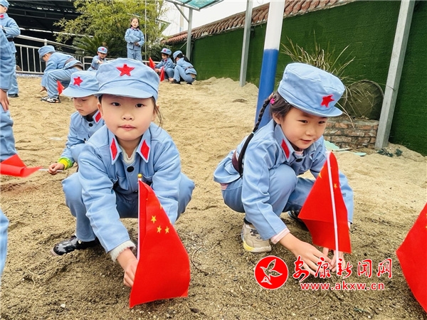 據(jù)了解,本次活動(dòng)基于幼兒的身心發(fā)展階段性特點(diǎn),分為小班聆聽故事、中班辨識(shí)黨徽、大班體能體驗(yàn)三個(gè)板塊,旨在激發(fā)幼兒傳承革命優(yōu)良傳統(tǒng)的熱情,讓紅色基因扎根孩子們幼小的心靈;顒(dòng)中,該園教師借助圖片、視頻等載體,向小班幼兒介紹了黨徽、黨旗等標(biāo)識(shí),并解讀了標(biāo)識(shí)的文化內(nèi)涵;在中班組,該園教師通過通俗易懂的語言,深情講述了吃水不忘挖井人等紅色故事,引導(dǎo)幼兒感受大公無私、為民服務(wù)的紅色精神,珍惜今天來之不易的幸福生活;大班幼兒則是在老師的組織下開展“重走長征路”體能體驗(yàn)活動(dòng),通過“過草地”“爬雪山”“飛奪瀘定橋”“運(yùn)軍糧”等趣味運(yùn)動(dòng),真切感受紅軍長征的艱辛和不易,學(xué)習(xí)長征精神,沿著紅色足跡走好新時(shí)代的“長征路”。
