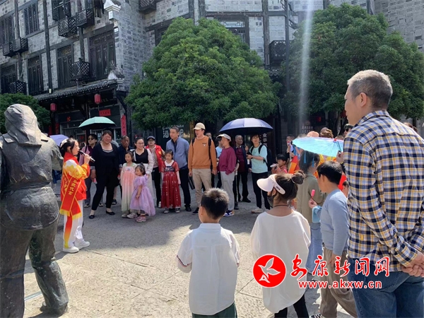 “各位游客大家好,我是自石泉縣城關一小的小小講解員,歡迎大家跟隨我的腳步游覽石泉秦巴老街”。這五一假日期間從石泉秦巴老街里傳來的朗朗童聲,來自“小小講解員·童音話石泉”——石泉縣全域旅游紅領巾講解員培訓班的小朋友們用稚嫩且熟練的話語、自信的神態(tài)向往來游客們介紹了石泉老街東西城門、石泉縣衙、禹王宮、江西會館以及老街上的美食,小小講解員各個儀態(tài)大方、表達清晰、發(fā)揮自如,贏得了游客們駐足圍觀,時不時傳來陣陣掌聲和夸獎。