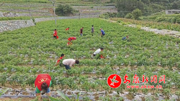 在他的不懈努力下,2024年初,柏橋村新發(fā)展了預(yù)制菜基地,重點(diǎn)種植辣椒200畝,柏橋村集體合作社全力支持,率先流轉(zhuǎn)土地80畝進(jìn)行規(guī);N植。同時,積極動員周邊農(nóng)戶參與,通過土地流轉(zhuǎn)和種植技術(shù)指導(dǎo),成功帶動14戶農(nóng)戶種植辣椒120畝,形成了“合作社+農(nóng)戶”的緊密合作模式。